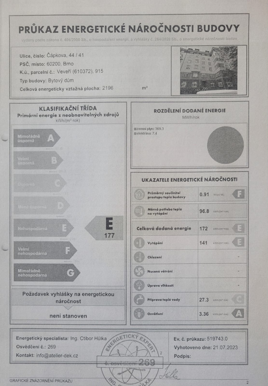 | Ukazatel ENB: | 177 kWh/m2 za rok |