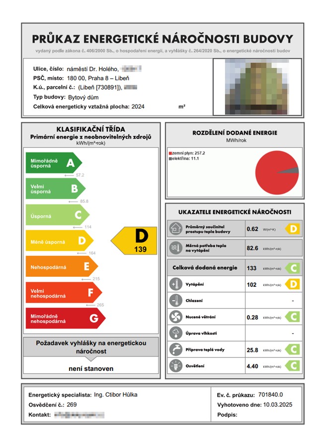 | Ukazatel ENB: | 139 kWh/m2 za rok |